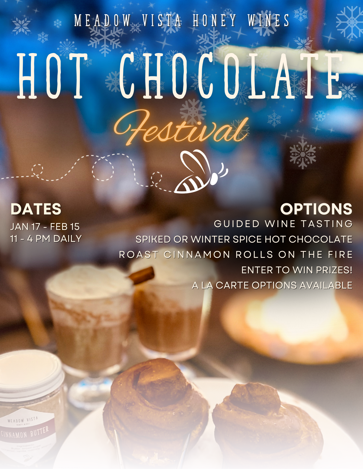 Come and try our exclusive Hot Chocolate Festival offerings! Winter Spiked (or non alcoholic) Hot Chocolate; enjoyed by the fire. Add a Guided Wine tasting in our indoor tasting room or cinnamon roll for roasting over our fire pits! Enter to win our winter draw and VOTE for your favourite Hot Chocolate on the Okanagan Hot Chocolate Festival official site! okanaganhotchocolatefest.ca